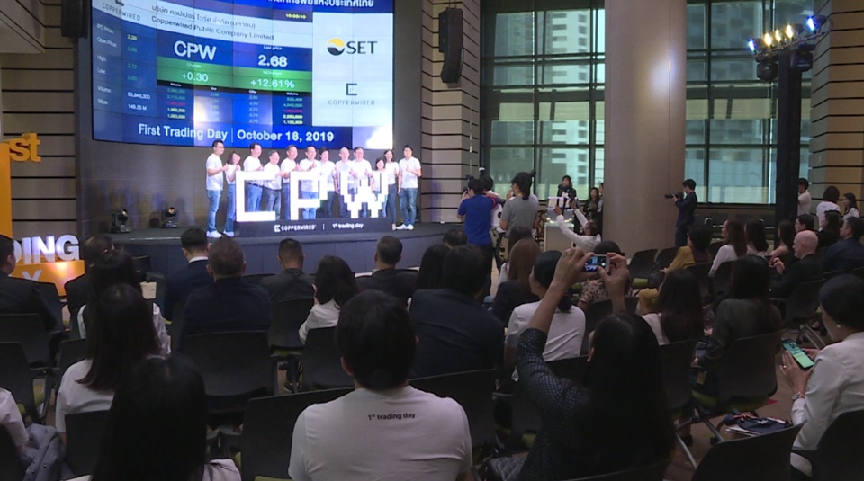 ตลท. 18 ต.ค. – บมจ.คอปเปอร์ ไวร์ด (CPW) เปิดเทรดวันแรก 2.68 บาท เพิ่มขึ้น 0.30 บาท หรือร้อยละ 12.61 จากราคาขาย IPO 2.38 บาท/หุ้น