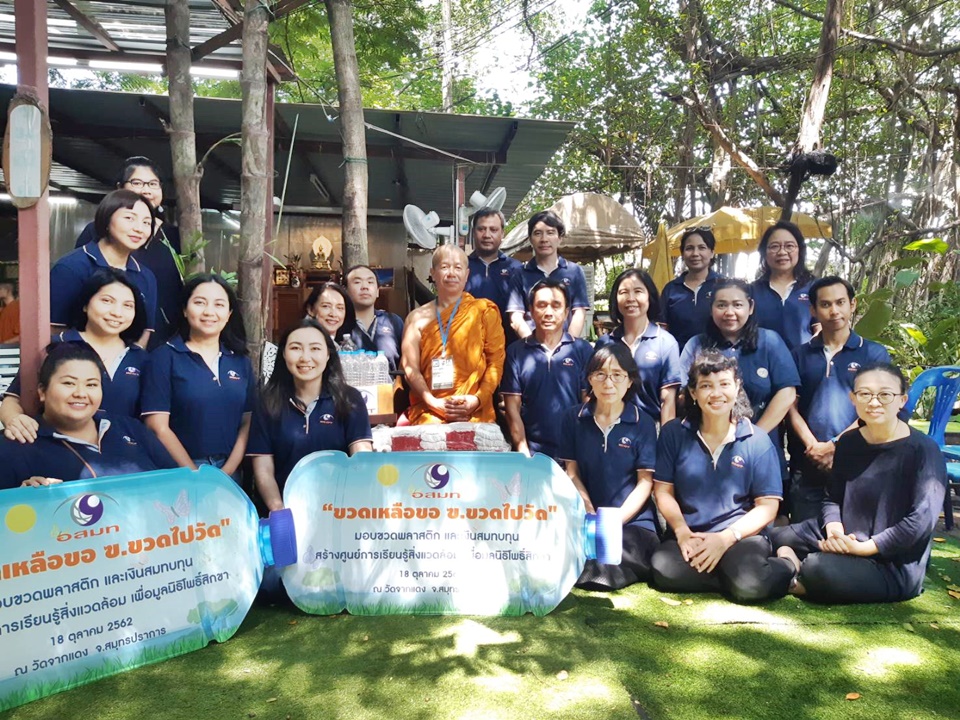 โดยปัจจุบันมีการนำพลาสติกมาใช้ในชีวิตประจำวันเป็นจำนวนมาก เนื่องจากน้ำหนักเบา มีความยืดหยุ่นสูง ทำให้ง่ายต่อการใช้งาน ทำให้เกิดขยะจากพลาสติกใช้แล้วเป็นจำนวนมาก ซึ่งการRecycle เป็นอีกทางเลือกหนึ่งที่สามารถช่วยจัดการกับขยะพลาสติกเหล่านี้ บริษัท อสมท จำกัด (มหาชน) ตระหนักถึงความสำคัญของการแก้ปัญหาขยะพลาสติกจึงขอเป็นส่วนหนึ่งด้วยการจัดกิจกรรม “ขวดเหลือขอ ฃ.ขวดไปวัด” โดยตั้งกล่องรับบริจาคขวดน้ำพลาสติกจากพนักงาน ส่งมอบให้กับวัดจากแดง จ.สมุทรปราการ เพื่อนำเข้ากระบวนการ Recycle แปรรูปเป็นผ้าไตรจีวรพระนาโนต่อไป