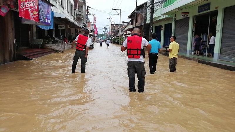 พ.ต.ท.จารุบุตร เรืองศรี ผบ.ร้อยตำรวจตระเวนชายแดนที่ 147 ค่ายพระมงกุฎเกล้า อ.บางสะพาน จ.ประจวบคีรีขันธ์ จัดชุดเจ้าหน้าที่ช่วยอำนวยความสะดวกประชาชนที่สัญจรในพื้นที่มีน้ำท่วมขังเส้นทาง โดยเฉพาะย่านตลาดเทศบาลตำบลบางสะพานน้อย หลังเกิดฝนตกหลายชั่วโมง ทำให้น้ำระบายไม่ทัน ประกอบกับมีน้ำทะเลหนุนสูงที่บ้านปากคลอง น้ำจึงระบายช้า นอกจากนี้ ถนนเพชรเกษมน้ำท่วมขังบริเวณสามแยกทางเข้าบางสะพานน้อย หมู่ 3 ต.ช้างแรก รวมทั้ง ต.ทรายทอง ต.ปากแพรก และ ต.ไชยราช รอยต่อกับจังหวัดชุมพร.-สำนักข่าวไทย