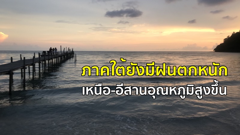 กรมอุตุนิยมวิทยา พยากรณ์อากาศ 24 ชั่วโมงข้างหน้า ภาคใต้ยังคงมีฝนตกหนักบางแห่ง ขอให้ประชาชนบริเวณดังกล่าวระวังอันตรายจากฝนตกหนักและฝนที่ตกสะสม ซึ่งอาจทำให้เกิดน้ำท่วมฉับพลันและน้ำป่าไหลหลากได้ ส่วนภาคเหนือและภาคตะวันออกเฉียงเหนือ อุณหภูมิสูงขึ้นเล็กน้อย กับมีหมอกในตอนเช้า