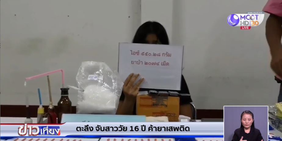ตำรวจ สภ.ท่าชนะ จ.สุราษฎร์ธานี กำลังตรวจสอบของกลางยาเสพติดจำนวนมาก หลังจากจับกุมผู้ต้องหาคดียาเสพติดได้ 1 ราย เป็นเยาวชนหญิงอายุ 16 ปี ชาว อ.ท่าชนะ จ.สุราษฎร์ธานี พร้อมของกลางยาไอซ์ ชนิดเกล็ดสีขาว บรรจุในถุงพลาสติกใส จำนวน 2 ถุง น้ำหนักรวมประมาณ 550.28 กรัม ยาบ้าจำนวน 2,074 เม็ด กระเป๋าแบบมีซิปสีดำจำนวน 1 ใบ เครื่องชั่งดิจิทัลสำหรับชั่งน้ำหนักยาเสพติดจำนวน 3 เครื่อง อุปกรณ์การเสพยาเสพติดจำนวน 4 ชุด โทรศัพท์มือถือ 1 เครื่อง โดยจับกุมได้ที่ขนำในสวนปาล์ม อ.ท่าชนะ จ.สุราษฎร์ธานี
