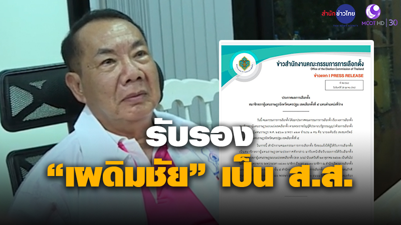 กทม. 28 ต.ค.- ผู้สื่อข่าวรายงานว่า วันนี้ (28 ต.ค.) คณะกรรมการการเลือกตั้ง (กกต.) ได้ประกาศรับรองให้นายเผดิมชัย สะสมทรัพย์ ผู้สมัครจากพรรคชาติไทยพัฒนา เป็น ส.ส. เขต 5 นครปฐมแล้ว หลังชนะการเลือกตั้งเมื่อวันนี้ 23 ตุลาคม 2562