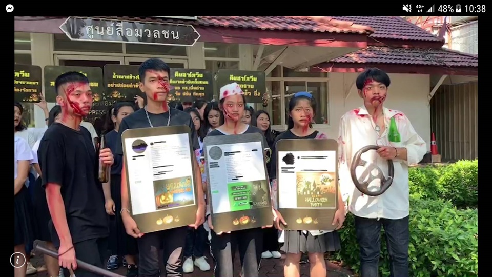 นายธีรภัทร์ คหะวงศ์ ผู้ประสานงานเครือข่ายเยาวชนป้องกันนักดื่มหน้าใหม่ พร้อมด้วยเครือข่ายนักเรียน นักศึกษา จากหลายสถานบัน กว่า 30 คน ยื่นจดหมายเปิดผนึกถึง พลตำรวจเอกจักรทิพย์ ชัยจินดา ผู้บัญชาการตำรวจแห่งชาติ เพื่อให้สำนักงานตำรวจแห่งชาติ คุมเข้มและบังคับใช้กฎหมายควบคุมเครื่องดื่มแอลกอฮอล์ และกฎหมายจราจรในช่วงเทศกาลวันฮาโลวีนอย่างจริงจัง