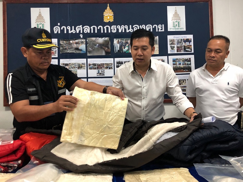 หนองคาย 30 ต.ค.- ศุลกากรหนองคายตาไวยึดโคเคน 3 กก. หลังเห็นรอยเย็บไม่เนียนเสื้อกันหนาวแบบนวมทั้ง 4 ตัว ในกระเป๋าเดินทางของสาววัย 19 ปี ขณะผ่านด่านพรมแดนสะพานมิตรภาพไทย–ลาว ผู้ต้องหาอ้างเพิ่งกลับจากเยี่ยมแฟนที่ต่างประเทศ เพื่อนฝากเสื้อมาให้พรรคพวกที่เมืองไทย
