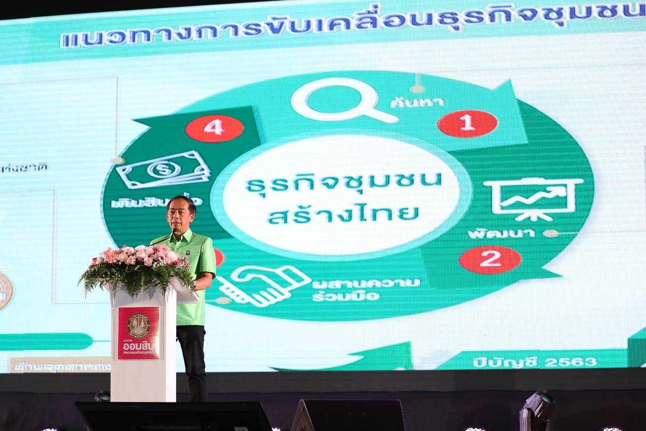 ทั้งนี้ ธ.ก.ส. ได้นำนโยบายมาจัดทำเป็นโครงการธุรกิจชุมชนสร้างไทย โดยสนับสนุนการดำเนินกิจกรรมทางเศรษฐกิจของคนในชุมชน ประกอบด้วย กิจกรรมการผลิต กิจกรรมขายผลผลิต กิจกรรมการซื้อและบริโภคของคนในชุมชนอย่างมีส่วนร่วม สอดคล้องกับวิถีชีวิตของคนในชุมชน โดยใช้ทรัพยากรของชุมชน มีการแบ่งปันผลประโยชน์อย่างเกื้อกูลและเป็นธรรม โดยมีแนวทางในการขับเคลื่อนที่เริ่มจากการค้นหาและศึกษาความต้องการของชุมชน ทั้งโอกาส ศักยภาพ ปัญหา แนวทางพัฒนาและแก้ไข เหมือนการระเบิดจากภายใน จากนั้นจึงเริ่มพัฒนา สร้างความเข้มแข็ง โดยยึดหลักตลาดนำการผลิตและมีการกำหนดแผนธุรกิจที่ชัดเจน ผสานความร่วมมือจากภาครัฐและเอกชนในด้านความรู้ เทคโนโลยีนวัตกรรม งานวิจัย และงบประมาณ อีกทั้ง ธ.ก.ส. ยังช่วยสนับสนุนสินเชื่อให้กับ Smart Farmer ผู้ประกอบการ SME เกษตร วิสาหกิจชุมชน และสหกรณ์การเกษตร เพื่อทำให้เกิด ผลลัพธ์ คือ ความมั่นคงของเศรษฐกิจฐานราก มีภูมิคุ้มกัน มีรายได้ สวัสดิการสังคม และโอกาสทางการตลาดที่เพิ่มขึ้น