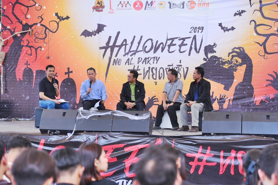 วันนี้ (31ต.ค.) ที่ลานกิจกรรมเกาะพญาไท อนุสาวรีย์ชัยสมรภูมิ กทม. สำนักงานกองทุนสนับสนุนการสร้างเสริมสุขภาพ(สสส.) ร่วมกับเครือข่ายเยาวชนพัฒนาคุณภาพชีวิต เครือข่ายเยาวชนป้องกันนักดื่มหน้าใหม่ และภาคีเครือข่าย จัดกิจกรรมรณรงค์รับวันฮาโลวีน ภายใต้แนวคิด Halloween 2019 NO AL Party #หยุดผีซิ่ง ภายในงานมีกิจกรรมของกลุ่มเยาวชนตลอดทั้งวัน อาทิ แต่งกายเป็นผี กิจกรรมหยุดผีซิ่ง บูธรณรงค์ ส่วนช่วงเย็นมีเวทีการแสดงจากเครือข่ายเยาวชน อาทิ น้องมิกซ์ เดอะแรปเปอร์ ซิน เดอะวอยซ์ แดเนียล ไมค์ทองคำ วง PENTATONIC และ DS.RU Band