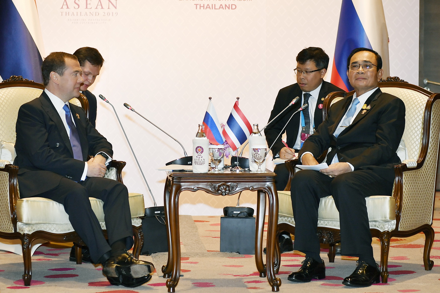 เวลา 17.10 น. พลเอก ประยุทธ์ จันทร์โอชา นายกรัฐมนตรีและรัฐมนตรีว่าการกระทรวงกลาโหม หารือกับนายดมิทรี เมดเวเดฟ (Dmitry Medvedev) นายกรัฐมนตรีสหพันธรัฐรัสเซีย ในโอกาสเดินทางมาเข้าร่วมประชุมสุดยอดอาเซียนครั้งที่ 35