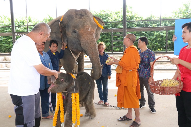 ชลบุรี 5 พ.ย.- สวนนงนุชพัทยาทำพิธีรับขวัญเป็นสิริมงคลแก่สมาชิกล่าสุด “พลายน้ำพุ” เชือกที่ 4 ของปีนี้ กำเนิดจากพ่อแม่ผสมพันธุ์โดยธรรมชาติ