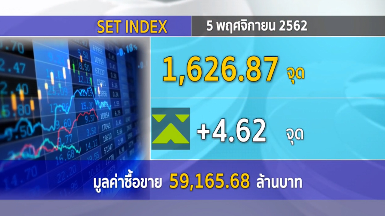 กรุงเทพฯ 5 พ.ย. -ตลาดหลักทรัพย์ปิดวันนี้ที่ระดับ 1,626.87 จุด บวก 4.62 จุด มูลค่าการซื้อขาย 59,165.68 ล้านบาท.-สำนักข่าวไทย