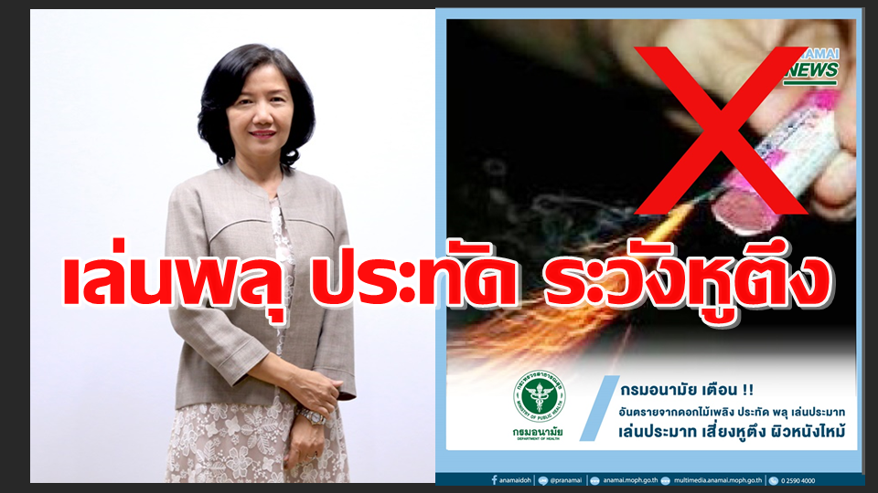 “สำหรับประชาชน หากเป็นไปได้อยากให้ลดการเล่นดอกไม้เพลิง ประทัด พลุ เพื่อความปลอดภัยต่อชีวิตและทรัพย์สินตนเองและผู้อยู่บริเวณใกล้เคียง โดยเฉพาะห้ามจุดในร้านอาหาร สถานบันเทิง และแหล่งชุมชนที่มีผู้คนจำนวนมากเพราะอาจเกิดอันตรายและเพลิงไหม้ได้ นอกจากนี้ ควรเก็บให้ห่างจากเด็กและห้ามเด็กจุดเล่นโดยลำพังเด็ดขาด ผู้ปกครองต้องดูแลบุตรหลานอย่างใกล้ชิดและควรสอนเด็กว่าประทัด ดอกไม้ไฟ และพลุ ไม่ใช่ของเล่นและเป็นวัตถุอันตรายสำหรับเด็กและไม่ควรอยู่ใกล้บริเวณที่มีการจุดประทัด ดอกไม้ไฟและพลุ หากพบเห็นผู้ได้รับบาดเจ็บจากการจุดประทัด ดอกไม้ไฟ และพลุ ให้รีบโทรแจ้งขอความช่วยเหลือจากทีมแพทย์กู้ชีพ โทร 1669 โทรแจ้งได้ทันทีตลอด 24 ชั่วโมง” อธิบดีกรมอนามัย กล่าว .-สำนักข่าวไทย