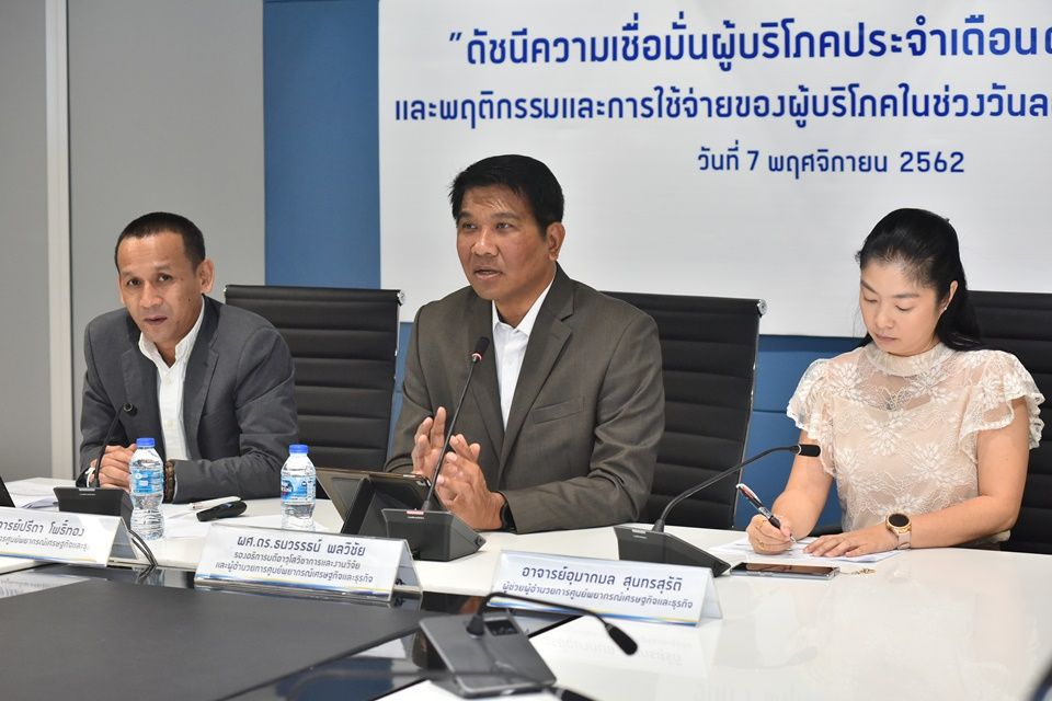Thanavath Phonvichai, UTCC’s director for economic and business forecasting, said the consumer confidence index dropped to 70.2 in October as consumers were worried about the trade war between China and the United States, the US’s suspension of its tariff privileges for some Thai exports, Thai political uncertainties, and the low prices of farm products including rubber and oil palm nuts.