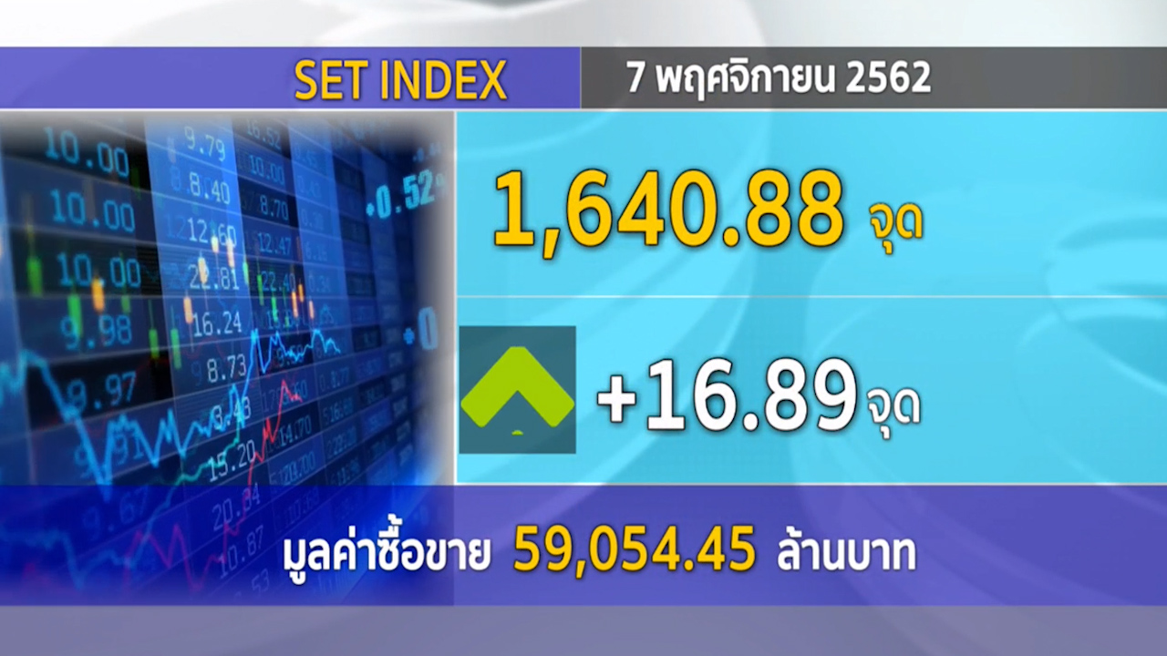 กรุงเทพฯ 7 พ.ย. –ดัชนีตลาดหลักทรัพย์ฯ ปิดวันนี้ (7 พ.ย.) ที่ระดับ 1,640.88 จุด บวก 16.89 จุด มูลค่าการซื้อขาย 59,054.45 ล้านบาท.-สำนักข่าวไทย
