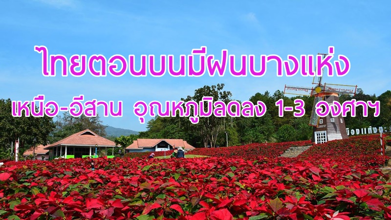 กรมอุตุนิยมวิทยาพยากรณ์อากาศ 24 ชั่วโมงข้างหน้า ประเทศไทยตอนบนมีหมอกบางในตอนเช้าและมีฝนบางแห่ง โดยภาคเหนือและภาคตะวันออกเฉียงเหนือยังคงมีอากาศเย็นในตอนเช้า โดยอุณหภูมิจะลดลง 1-3 องศาฯ สำหรับภาคใต้มีฝนตกต่อเนื่องและมีฝนตกหนักบางแห่ง ขอให้ประชาชนบริเวณภาคใต้ระวังอันตรายจากฝนที่ตกสะสมไว้ด้วย