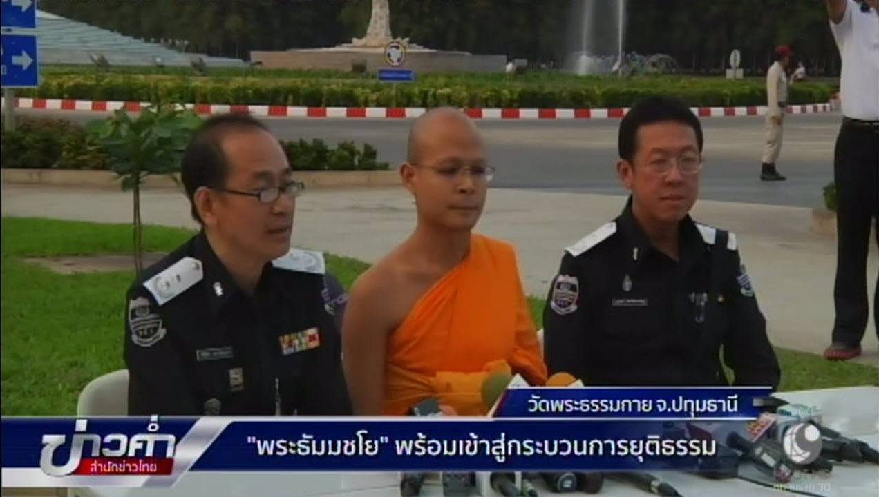 ปทุมธานี 2 ธ.ค.-สำนักข่าวไทยยังคงเกาะติดการนิมนต์พระธัมมชโยมาดำเนินคดี ซึ่งเมื่อช่วงบ่ายที่ผ่านมา ตัวแทนจากสำนักพุทธฯ และดีเอสไอได้เข้าหารือที่วัดพระธรรมกาย โดยวัดยืนยันว่า พระธัมมชโย พร้อมเข้าสู่กระบวนการยุติธรรม แต่ขอความมั่นใจว่า หากมอบตัวจะต้องได้รับการประกันตัว และต้องได้รับความยุติธรรมในด้านคดีความ