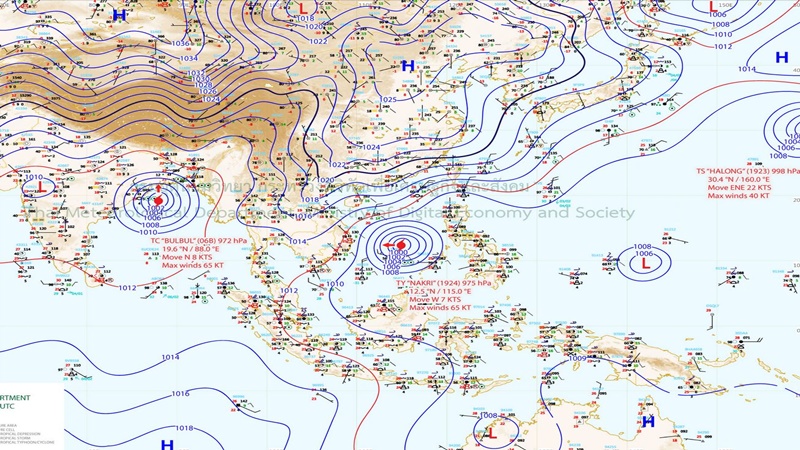 เมื่อเวลา 04.00 น. วันนี้ (9 พ.ย.2562) พายุระดับ 5 (ไต้ฝุ่น) “นากรี” บริเวณทะเลจีนใต้ตอนกลาง มีศูนย์กลางอยู่ที่ละติจูด 12.5 องศาเหนือ ลองจิจูด 114.5 องศาตะวันออก พายุนี้กำลังเคลื่อนตัวทางตะวันตกด้วยความเร็ว 15 กิโลเมตรต่อชั่วโมง มีความเร็วลมสูงสุดใกล้ศูนย์กลางประมาณ 120 กิโลเมตรต่อชั่วโมง คาดว่าจะเคลื่อนตัวเข้าใกล้ชายฝั่งประเทศเวียดนามตอนกลางในช่วงวันที่ 10-11 พ.ย.2562 ขอให้ผู้ที่เดินทางไปประเทศเวียดนามตรวจสอบสภาพอากาศก่อนออกเดินทางไว้ด้วย