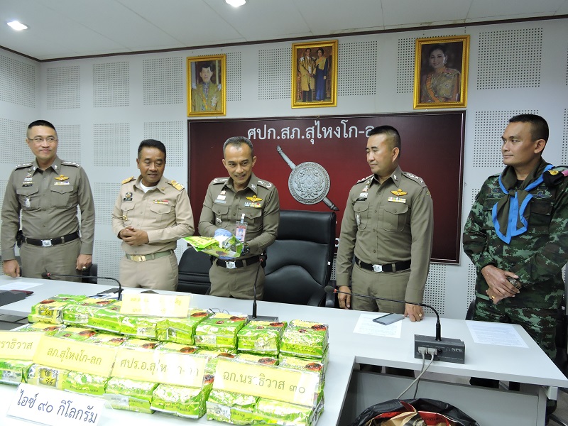 บ่ายวันนี้ (11 พ.ย.) พล.ต.ต.นรินทร์ บูสะมัญ ผู้บังคับการตำรวจภูธรจังหวัดนราธิวาส นายปรีชา นวลน้อย นายอำเภอสุไหงโก-ลก และ พ.ต.สุกฤษฐ์ กาญจนคลอด รองผู้บังคับหน่วยเฉพาะกิจนราธิวาส 30 แถลงผลการตรวจยึดไอซ์ 90 กิโลกรัม หลังจากชายคนขับรถเก๋ง รุ่นแคมรี่ สีบรอนซ์ทอง ทะเบียน ขก 7989 สุราษฎร์ธานี ขับหนีด่านตรวจแยกกอไผ่ ต.สุไหงโก-ลก อ.สุไหงโก-ลก จ.นราธิวาส และรถจักรยานยนต์ของตำรวจล้มบาดเจ็บ 2 นาย คือ ส.ต.อ.โกเมศ ชอบแต่ง และ ส.ต.อ.ทรงวิชต์ แก้วมณี เจ้าหน้าที่ได้ไล่ติดตามรถเก๋งคันดังกล่าวไปกระชั้นชิดจนถึงทางตันปากทางเข้าหมู่บ้านเคหะ คนขับรถเก๋งได้ทิ้งรถไว้แล้วหนีไป การตรวจค้นรถพบกระสอบบรรจุไอซ์ 19 ใบ จำนวน 90 กิโลกรัม