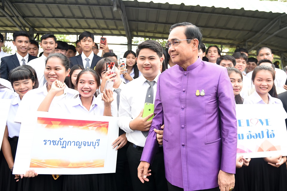 พล.อ.ประยุทธ์ จันทร์โอชา นายกรัฐมนตรีและรัฐมนตรีว่าการกระทรวงกลาโหม เป็นประธานการประชุมคณะรัฐมนตรี(ครม.) นอกสถานที่อย่างเป็นทางการ และการประชุมพัฒนาเศรษฐกิจและสังคมกลุ่มจังหวัดภาคกลางตอนล่าง 1 ที่มหาวิทยาลัยราชภัฎกาญจนบุรี โดยก่อนเริ่มการประชุม นายกรัฐมนตรีกล่าวทักทายนักศึกษามหาวิทยาลัยราชภัฏกาญจนบุรีที่มาต้อนรับอย่างเป็นกันเอง โดยทันทีที่ลงจากรถ นักศึกษาได้กล่าวว่า “รักลุงตู่” ทำให้นายกรัฐมนตรียิ้มและเดินเข้าไปหาเด็กที่ถือป้าย “ชิม ช้อป ใช้” พร้อมสอบถามว่า ได้ใช้ชิมช้อปใช้หรือไม่ ซึ่งนักศึกษาตอบว่า ใช้ค่ะ จากนั้น ก็ได้ร่วมถ่ายรูปกับนักศึกษาอย่างเป็นกันเอง พร้อมกล่าวขอให้ทุกคนตั้งใจเรียน เลือกเรียนคณะที่ตลาดต้องการ