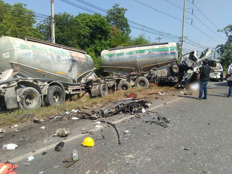 ฉะเชิงเทรา 12 พ.ย.- เกิดอุบัติเหตุถนนสายเลี่ยงเมืองฉะเชิงเทรา รถพ่วงบรรทุกน้ำอัดลมแซงขวาไม่พ้นประสานงาเต็มแรงพ่วงบรรทุกปูนซิเมนต์ ร่างคนขับกระเด็นออกมาเสียชีวิต ส่วนเพื่อนมาด้วยรอดชีวิต