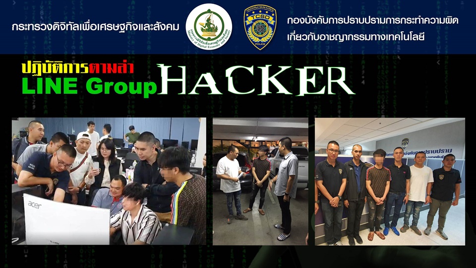 พันตำรวจเอกศิริวัฒน์ ดีพอ รองผู้บังคับการปรามปรามการกระทำความผิดเกี่ยวกับอาชญากรรมทางเทคโนโลยี เปิดเผยหลัง ตำรวจ ปอท.ใช้ปฏิบัติการตามล่า “LINE Group Hacker” ตั้งแต่วันที่ 11 ตุลาคม 2562 จับผู้ต้องหา 1 คน ในซอยบุปผาบุรี เขตยานนาวา พร้อมตรวจยึดอุปกรณ์คอมพิวเตอร์จำนวนหนึ่ง และต่อมามีผู้ต้องหามามอบตัวอีก 1 คน โดยผู้ต้องหาทั้ง 2 รายนี้ ไม่ได้เรียนหนังสือและเสพยาเสพติด