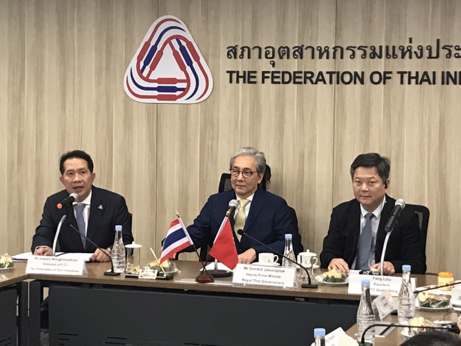 นายสมคิด จาตุศรีพิทักษ์ รองนายกรัฐมนตรี เป็นสักขีพยานการลงนาม และนายสุพันธุ์ มงคลสุธี ประธานสภาอุตสาหกรรมแห่งประเทศไทย กับนายฟาง ลี่ ซวี่ (Fang Lixu) ประธานคณะกรรมการส่งเสริมการค้าระหว่างประเทศมณฑลกวางตุ้ง (China Council for the Promotion of International Trade Guangdong Committee: CCPIT) เพื่อแลกเปลี่ยนข้อมูลและอำนวยความสะดวกทางธุรกิจระหว่างกัน นายสมคิด ชักชวนให้จีนเข้าท่องเที่ยวมากขึ้นจากเดิมเป้าหมาย 5 ล้านคน ขอให้ส่งเสริมชาวจีนมาท่องเที่ยวปลายปีมากขึ้นให้ได้ 10 ล้านคนภายในปีนี้ และรีบใช้จังหวะนี้ตัดสินใจเข้ามาลงทุน หลังจากรัฐบาลปักกิ่งเห็นชอบการประชุมร่วมระดับผู้นำไทย-จีน จึงอยากให้เร่งนักลงทุนจีนตัดสินใจลงทุน รองรับกลุ่มประเทศ RCEPT บรรลุข้อตกลงในช่วง 2 – 3 ปีข้างหน้า แม้อินเดียไม่ตัดสินใจเข้าร่วม แต่หลายประเทศเจรจาแล้วนับมีขนาดเศรษฐกิจใหญ่มาก ยอมรับว่านักลงทุนกวางตุ้งสนใจไทยเป็นอย่างมาก เพราะเป็นศูนย์กลางของอาเซียน