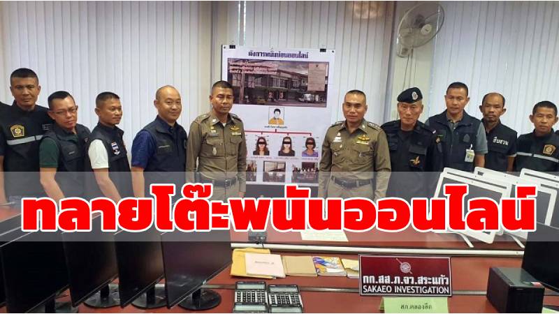 เมื่อเวลา 14.00 น. (14 พ.ย.) พล.ต.ต.ปราศรัย จิตตสนธิ ผู้บังคับการตำรวจภูธรจังหวัดสระแก้ว แถลงผลการสนธิกำลังกองร้อยทหารพรานที่ 1201 กวาดล้างการเล่นพนันออนไลน์ในพื้นที่คลองลึก อ.อรัญประเทศ หลังสืบทราบว่ามีการกระทำผิดในลักษณะลักลอบโฆษณา ชักชวน หรือจัดให้ผู้เข้าชมเว็บไซต์เล่นพนันออนไลน์ จึงขออนุมัติหมายค้นจากศาลจังหวัดสระแก้ว เข้าการตรวจค้นเป้าหมายในอาคารพาณิชย์แห่งหนึ่งย่านถนนสุวรรณศร ใกล้ตลาดโรงเกลือ ต.อรัญประเทศ อ.อรัญประเทศ และควบคุมตัวพนักงานหญิงไทย 4 คน ขณะรับแทงพนันทางเว็บไซต์ผ่านคอมพิวเตอร์จำนวน 4 เครื่อง พร้อมยึดของกลางหลายรายการ อาทิ ตัวรับสัญญาณ WIFI คอมพิวเตอร์ และโทรศัพท์มือถือ 6 เครื่อง