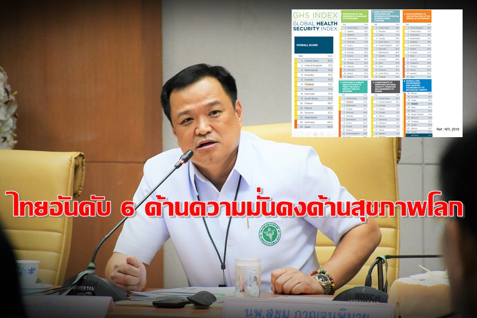 โดยประเทศไทยได้รับการจัดอันดับให้เป็นประเทศที่มีความเข้มแข็งด้านความมั่นคงด้านสุขภาพเป็นอันดับที่ 6 จากทั้งหมด 195 ประเทศ เป็นประเทศกำลังพัฒนาประเทศเดียวที่ถูกจัดให้อยู่ใน 10 อันดับสูงสุด (Top 10) ของโลก และเป็นอันดับ 1 ในเอเชียด้วยคะแนน 73.2 จาก 100 คะแนน ทำให้ได้รับการยกย่องว่าเป็นประเทศที่มีความพร้อมในการรับมือต่อการระบาดของโรคมากที่สุด ซึ่งมีเพียง 13 ประเทศทั่วโลกเท่านั้น นับเป็นความภาคภูมิใจของไทยเป็นอย่างมากที่มีระบบการป้องกันและควบคุมโรคที่เข้มแข็งเป็นที่ยอมรับในระดับโลก