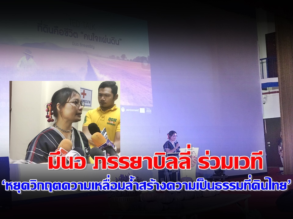 มธ.ท่าพระจันทร์ 16 พ.ย.-ภรรยาบิลลี่ ร่วมเวที ‘หยุดวิกฤตความเหลื่อมล้ำสร้างความเป็นธรรมที่ดินไทย’ เรียกร้องแก้ไขมติ ครม.30 มิ.ย.41 เรื่องการใช้ที่ดิน ที่ทำให้วิถีชีวิตชาวบ้านบางกลอย จ.เพชรบุรี เปลี่ยนไป