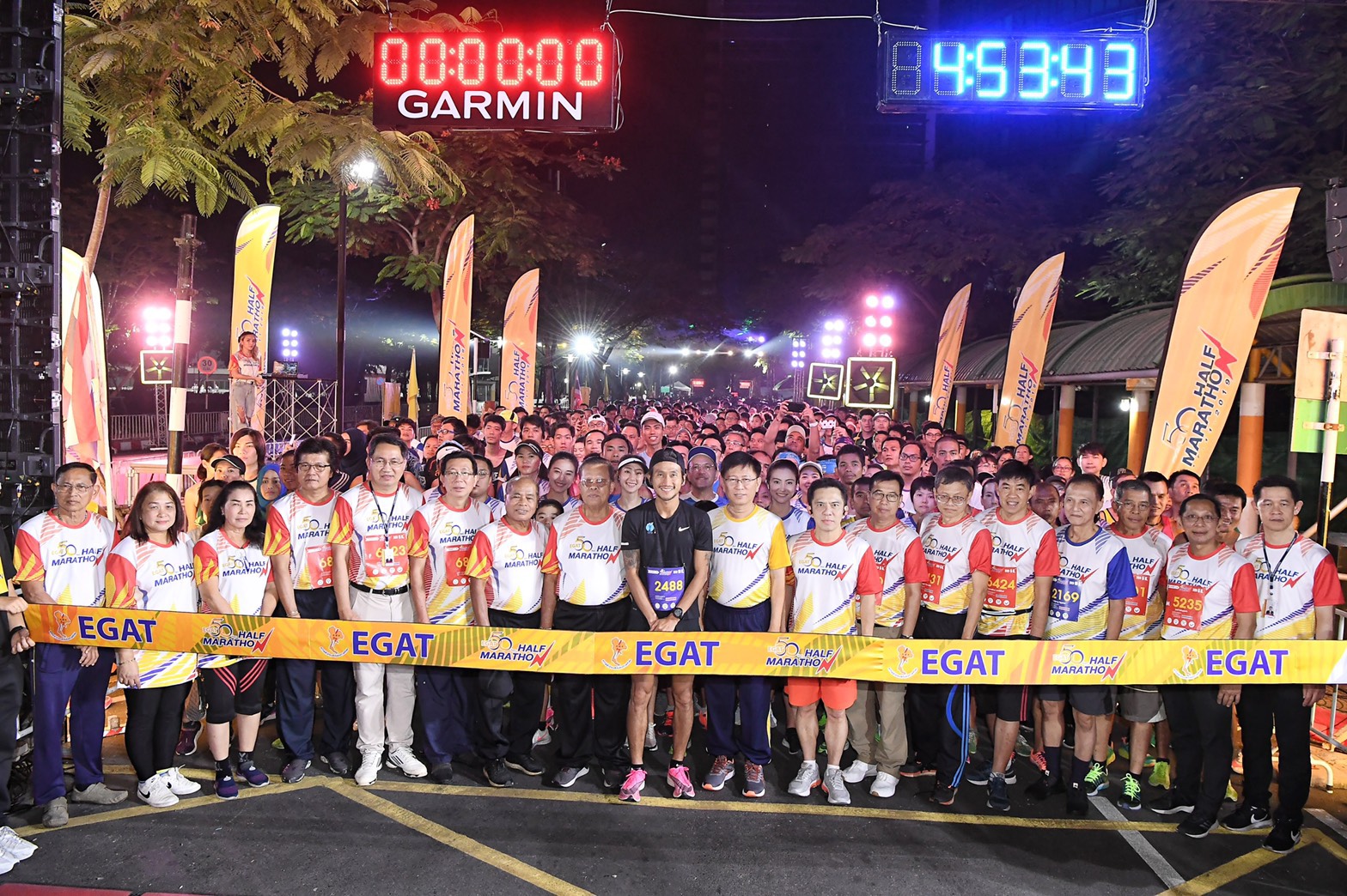 นายวิบูลย์ ฤกษ์ศิระทัย ผู้ว่าการ กฟผ. เปิดเผยว่า กฟผ. ขอขอบคุณคนไทยที่อยู่เคียงข้างกันมาตลอด 50 ปี กว่าครึ่งศตวรรษที่ กฟผ. ทำหน้าที่ผลิตไฟฟ้าเพื่อความสุขของคนไทย ตลอดจนการดูแลสังคม ชุมชนและสิ่งแวดล้อม ซึ่งกิจกรรมด้านกีฬาเป็นกิจกรรมที่ กฟผ. ให้การส่งเสริมให้จัดขึ้นอย่างต่อเนื่องทั้งในโรงไฟฟ้าและเขื่อนของ กฟผ. ในวันนี้ กฟผ. ขอขอบคุณพลังนักวิ่งกว่า 4,500 คน ในงานวิ่ง “50 ปี กฟผ. ฮาล์ฟมาราธอน” ที่ร่วมส่งมอบรายได้ทั้งหมดโดยไม่หักค่าใช้จ่ายเพื่อนำไปจัดซื้ออุปกรณ์ทางการแพทย์มอบให้กับโรงพยาบาลขนาดเล็กที่ขาดแคลน 7 โรงพยาบาลในพื้นที่ 5 จังหวัด รอบเขตเขื่อนและโรงไฟฟ้า กฟผ. ได้แก่ โรงพยาบาลท่ากระดาน จ.กาญจนบุรี โรงพยาบาลบ้านตาขุน จ.สุราษฎร์ธานี โรงพยาบาลสามเงา จ.ตาก โรงพยาบาลบันนังสตา จ.ยะลา โรงพยาบาลท่าปลา และโรงพยาบาลน้ำปาด จ.อุตรดิตถ์ และยอดจากการรับบริจาคจะมอบให้แก่ โรงพยาบาลทองผาภูมิ จ.กาญจนบุรี