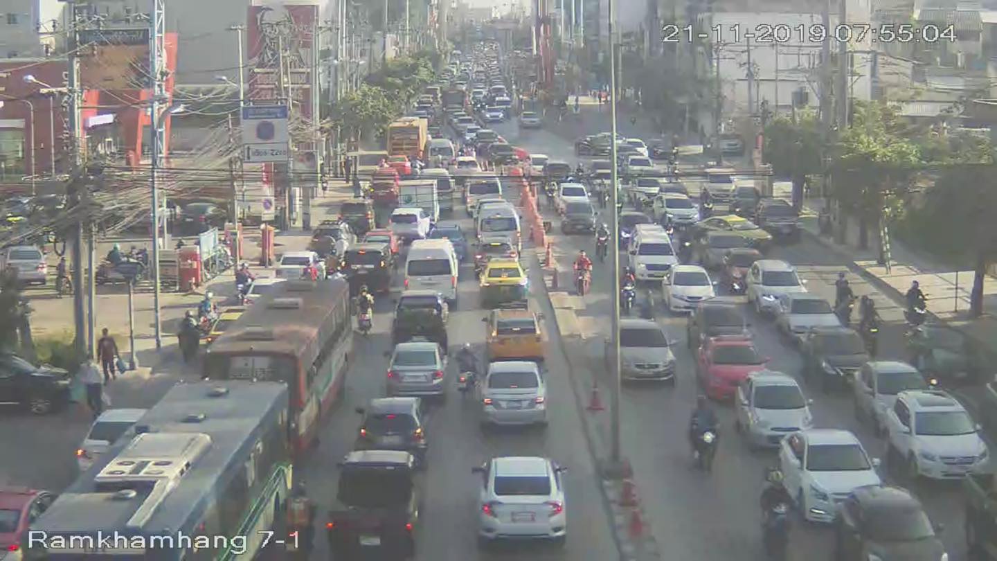ถนนรามคำแหง ขาออก จากแยกรามคำแหง มุ่งหน้าลำสาลี รถมาก ท้ายแถวสะสมหน้าฟู้ดแลนด์ หัวมาก