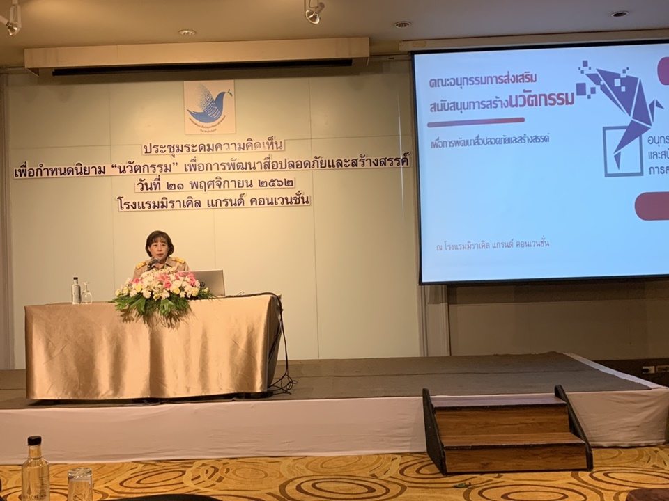 รร.มิราเคิลแกรนด์ 21พ.ย.-กองทุนพัฒนาสื่อปลอดภัยและสร้างสรรค์ จัดประชุมระดมความคิดเห็นเพื่อกำหนดนิยาม “นวัตกรรม”เพื่อการพัฒนาสื่อปลอดภัยและสร้างสรรค์