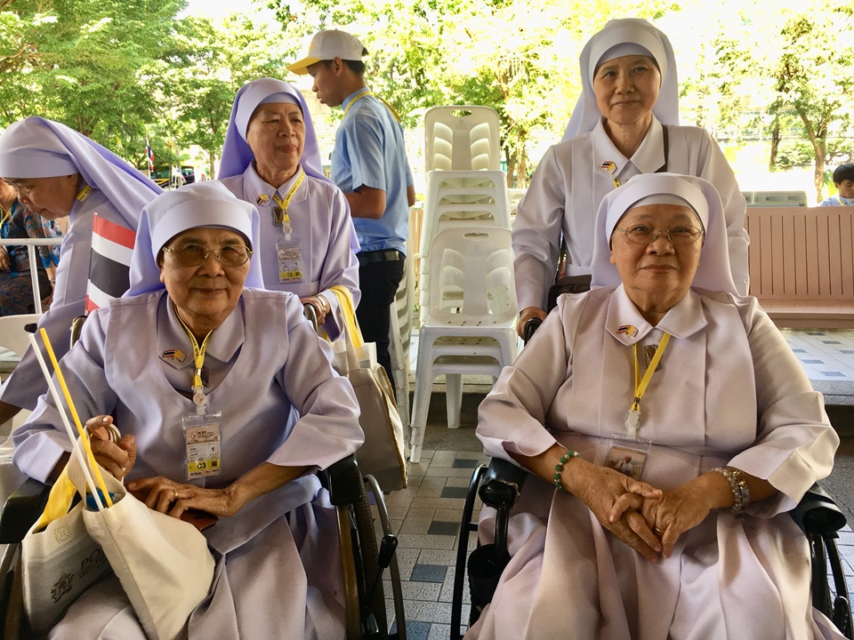 ซิสเตอร์สมศรี กิจวิทักษ์ อายุ 81 ปี ที่มีอาการป่วยข้อเท้าเสีย เดินทางมา ร่วมเฝ้ารับเสด็จพร้อมกับคณะพระหฤทัยของพระเยซูเจ้าแห่งกรุงเทพ ซึ่ง ซิสเตอร์สมศรี เป็นคนเดียวในคณะผู้ป่วยบนวีลแชร์ที่รอเฝ้ารับเสด็จอยู่หน้าโถงอาคาร 100 ปีบารมีบุญที่ได้มีโอกาสสัมผัสมือกับสมเด็จพระสัน ตะปาปาฟรังซิส โดยซิสเตอร์สมศรีเล่าเหตุการณ์ให้ฟังว่า รู้สึกตื่นเต้นและดีใจมาก ๆ จนอธิบายเป็นคำพูดไม่ถูก หลังจากที่ทราบข่าวว่าพระองค์จะเสด็จเยือนไทย ตลอด 1 เดือนที่ทราบ ก็ตั้งตารอเตรียมรักษาตัวให้พร้อมเพื่อมาวันนี้ ช่วงที่เสด็จมาเพียงแค่ได้เห็นพระองค์ก็ถือว่าเป็นที่สุดของชีวิตแล้วเพราะไม่คิดว่าจะได้มีโอกาสเจอพระองค์ใกล้ชิดขนาดนี้ เวลานั้นที่ท่านเสด็จผ่านจึงรวบรวมความกล้าตะโกนบอก “Ti amo” หรือ ฉันรักเธอ ในภาษาอิตาเลี่ยน เมื่อพระองค์ได้ยิน จึงเดินมาสัมผัสมือ ถือว่าเป็นเกียรติอย่างยิ่ง คุ้มค่ากับการรอคอยมากว่า35ปี นับตั้งแต่สมเด็จพระสันตะปาปา จอห์นปอลที่2 เคยเสด็จเยือนอย่างเป็นทางการ เมื่อปี 2537 สิ่งที่ได้รับและความรู้สึกที่เจอในวันนี้ นับว่าเป็นพลังใจ ให้สามารถมีชีวิตทำความดีต่อไปได้อีกนานเท่านาน