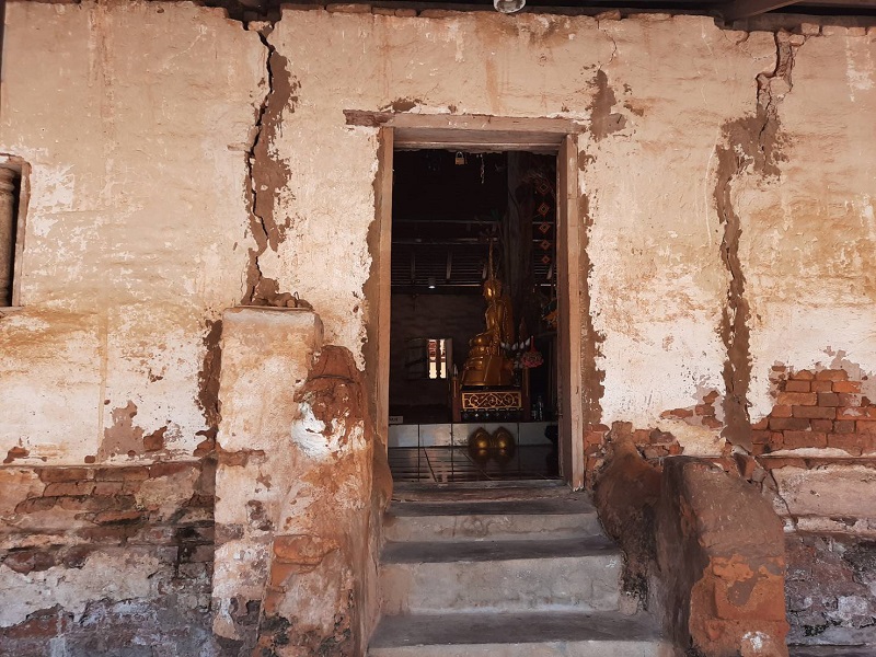 เลย 22 พ.ย.- ผู้ว่าฯ เลยได้รับรายงานล่าสุดอำเภอนาแห้วผลกระทบแผ่นดินไหวที่ลาว โบสถ์อายุกว่า 400 ปี วัดศรีโพธิ์ชัย ตามผนังพบร้าวใหม่อีก 6 จุด รอยร้าวเก่าขยายตัว เร่งประสานศิลปากรบูรณะก่อนเสียหายหนัก