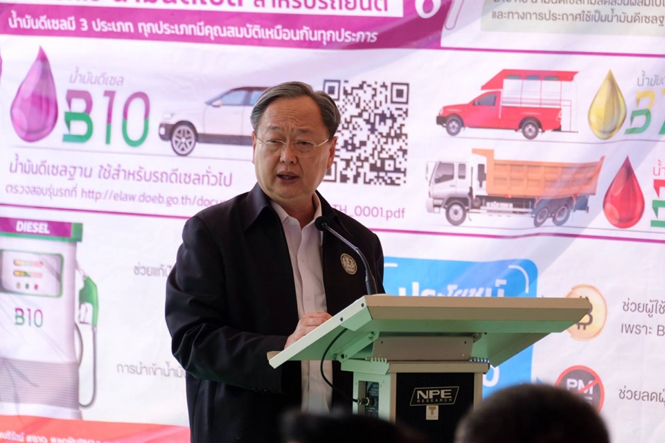 “หากผลักดันการใช้ B10 สำเร็จจะทำให้การใช้ไบโอดีเซลเพิ่มขึ้นประมาณ 2.1 ล้านลิตรต่อวัน หรือเพิ่มประมาณ 40% จากปัจจุบัน ซึ่งขณะนี้มีปริมาณการใช้ไบโอดีเซล 5.15 ล้านลิตรต่อวัน จะเพิ่มเป็นประมาณ 7 ล้านลิตรต่อวันในปี 2563 โดยภาคพลังงานจะช่วยดูดซับน้ำมันปาล์มดิบ (CPO) ได้ประมาณ 2 – 2.2 ล้านตันต่อปี และยังเกิดผลพลอยได้ช่วยลดมลภาวะทางอากาศจากฝุ่นละอองขนาดเล็ก (PM 2.5) อีกด้วย” รัฐมนตรีว่าการกระทรวงพลังงาน กล่าว