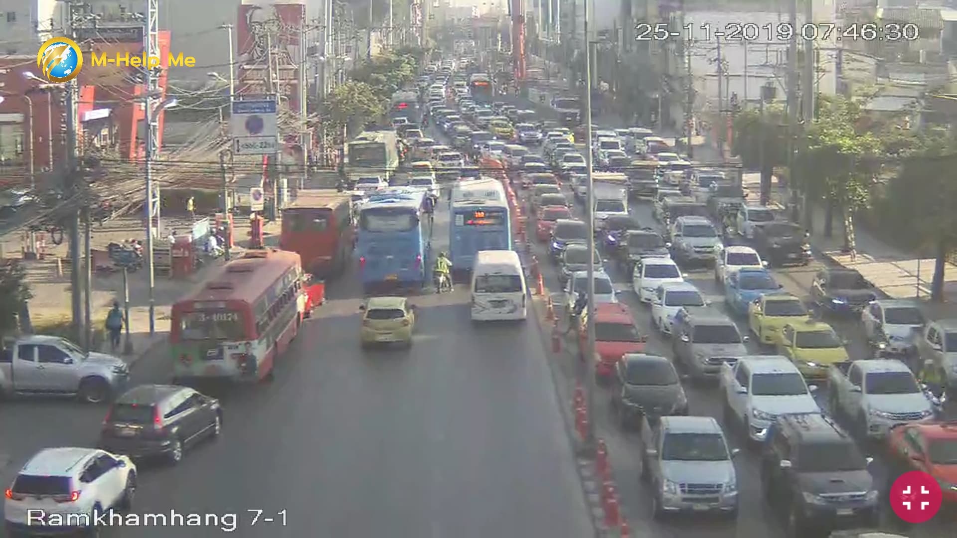 ถนนรามคำแหง ขาเข้า มุ่งหน้าแยกรามฯ รถติดขัดมาก ท้ายแถวสะสมอยู่ที่แยกบ้านม้า ส่วนฝั่งขาออก ติดไปแยกลำสาลี มีท้ายชะลอตัวอยู่ที่แยกรามคำแหง