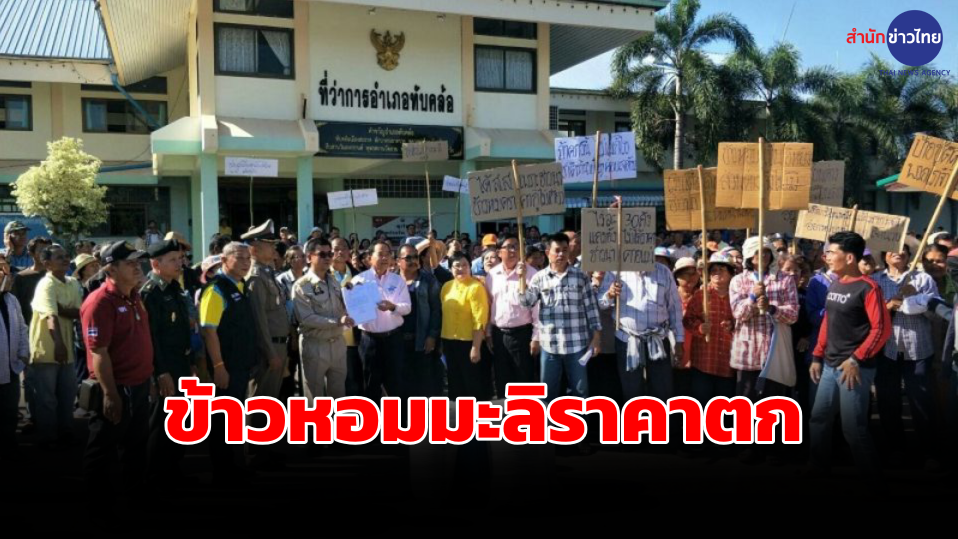 พิจิตร 25 พ.ย.- ชาวนาพิจิตรรวมหน้าอำเภอทับคล้อเรียกร้องรัฐบาลเร่งช่วยเหลือปัญหาข้าวหอมมะลิ 105 ราคาตกมากเหลือตันละ 8,000-9,000 บาท ต่ำกว่าราคาประกัน