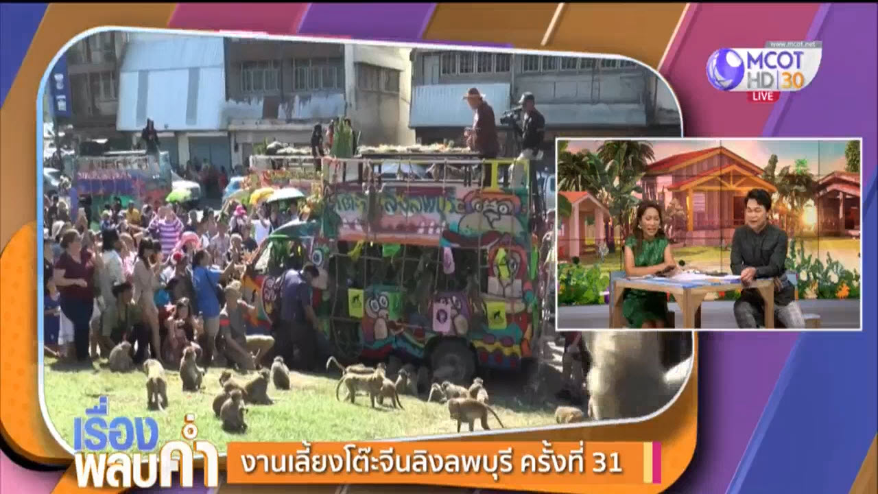 งานนี้ “ขอเชิญคุณจ๋อ ทุกเพศวัย ทุกก๊ก ทุกเหล่า ทุกสังกัด ร่วมฉลองงานเลี้ยงโต๊ะจีนลิง ลพบุรี ครั้งที่ 31 ตั้งโต๊ะ 3 รอบ 10.00 น. เวลา 12.00 น. และเวลา 16.00 น. สะดวกเวลาใด ก็เชิญมาเวลานั้น ไม่ต้องเกรงใจกัน ณ สถานที่เดิม (ลานรอบพระปรางค์สามยอด การแต่งกายชุดประจำชาติลิง ไม่จำกัดสี งานนี้กินฟรี งดรับซอง” พอเสร็จจากการป่าวประกาศ เหล่าบรรดาลิงน้อยใหญ่นับพันตัวต่างกระโดดขึ้นรถแย่งอาหารกินอย่างเอร็ดอร่อย
