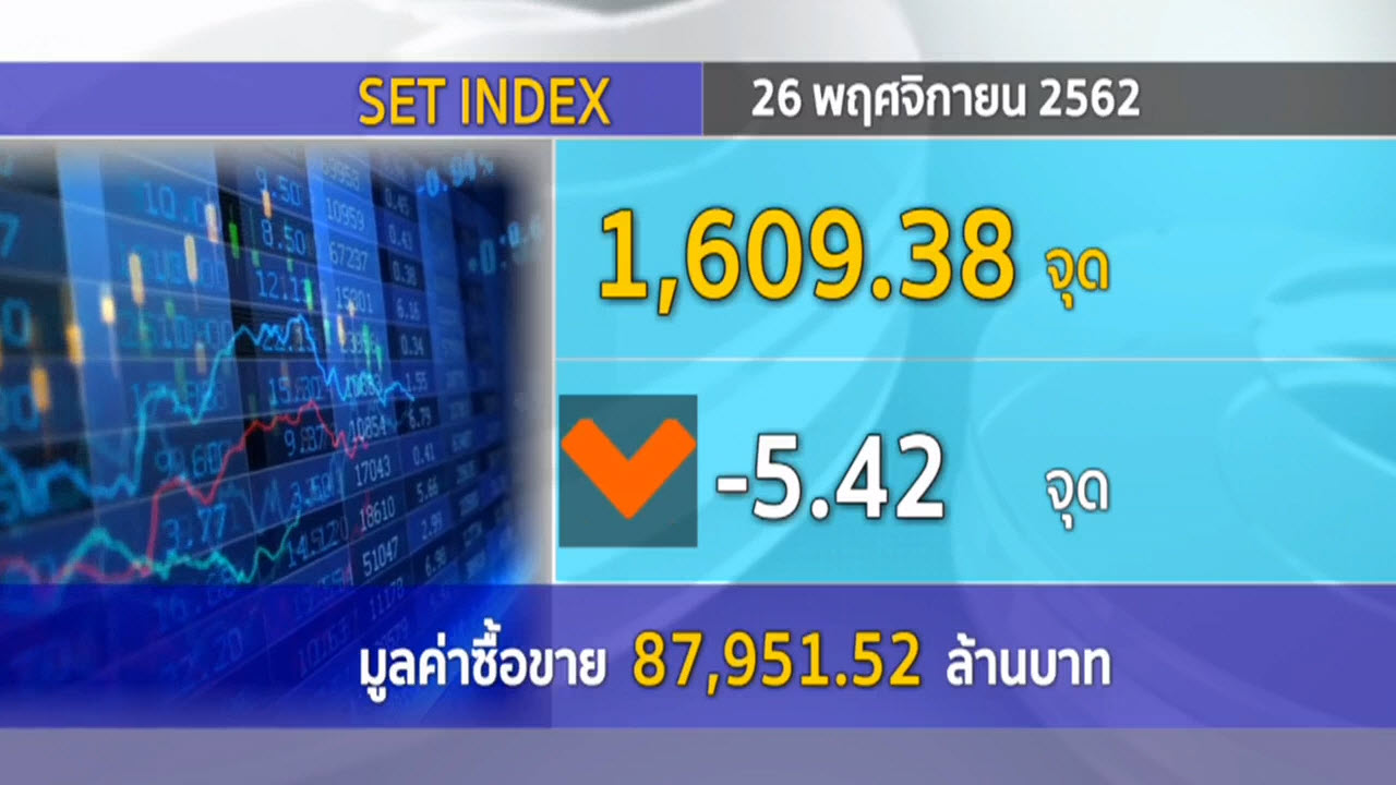กรุงเทพฯ 26 พ.ย. – หุ้นไทยปิดลบ 5.42 จุด หลัง MSCI ปรับน้ำหนักลงทุนวันนี้ ขายทำกำไรจากตอบรับเจรจาการค้าไปแล้ว