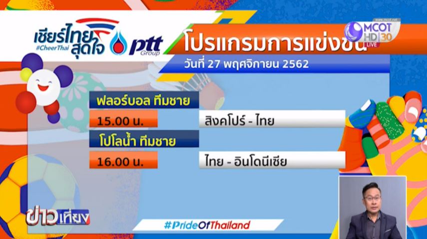 โปรแกรมการแข่งขันกีฬาซีเกมส์ของนักกีฬาไทยในช่วงบ่ายวันนี้