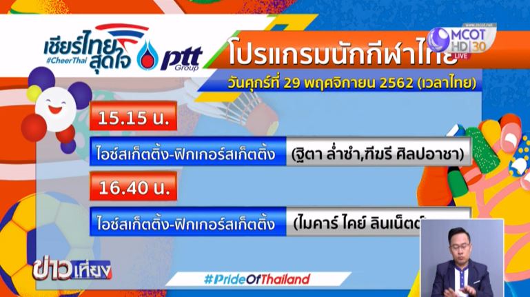 เวลา 15.15 น. ไอซ์สเก็ตติ้ง-ฟิกเกอร์สเก็ตติ้งหญิง โดยลุ้นเชียร์ – ฐิตา ล่ำซำ กับ ฑีฆรี ศิลปอาชา