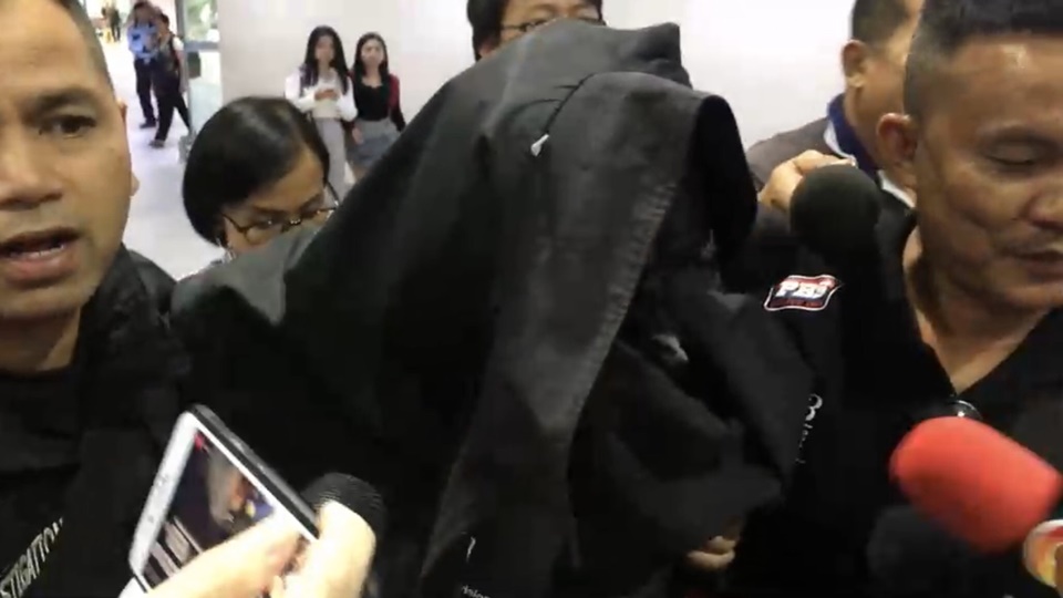 ทันทีที่ลงจากเครื่องบินและถูกนำตัวออกมาขึ้นรถตู้ที่เตรียมรอรับอยู่หน้าอาคารผู้โดยสารขาออก สนามบินดอนเมือง ผู้ต้องหาพยายามหลบสื่อมวลชน ใช้เสื้อคลุมหัวมิดชิด สวมแว่นตาดำ มีสีหน้าเคร่งเครียด