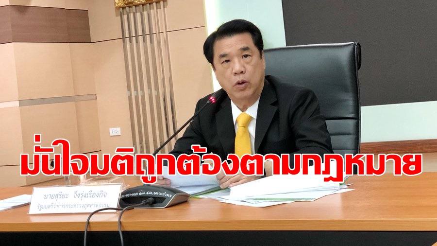 นายสุริยะ จึงรุ่งเรืองกิจ รมว.อุตสาหกรรม เปิดเผยว่า กระทรวงอุตสาหกรรมขอยืนยันมติการประชุมคณะกรรมการวัตถุอันตรายชุดใหม่ที่มีตนเป็นประธานเมื่อวันที่ 27 พ.ย.ที่ผ่านมา ถือเป็นมติที่ถูกต้องตามขั้นตอนกฎหมาย และไม่ได้เข้าใจผิดตามที่นายอนุทิน ชาญวีรกูล รองนายกรัฐมนตรีและ รมว.สาธารณสุข กล่าวอ้าง เนื่องจากได้ตรวจสอบจากฝ่ายกฎหมายที่เข้าร่วมประชุมในวันดังกล่าวแล้ว ว่าที่ประชุมฯ ปฏิบัติตามระเบียบและขั้นตอนตามกฎหมายทุกอย่าง