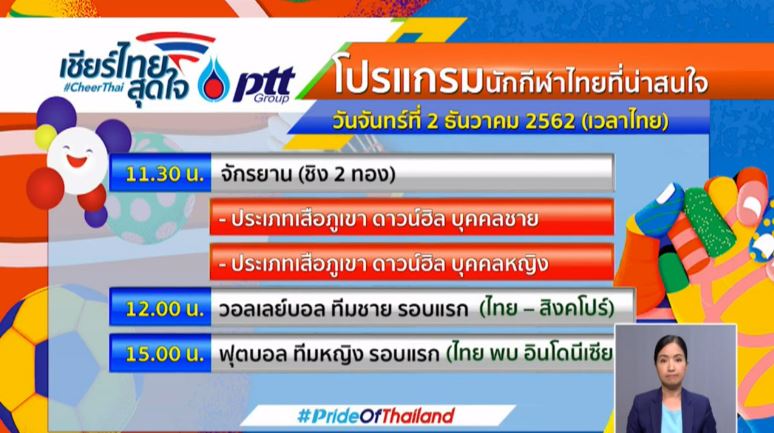 โปรแกรมซีเกมส์ 2019 ที่น่าสนใจช่วงบ่ายวันนี้