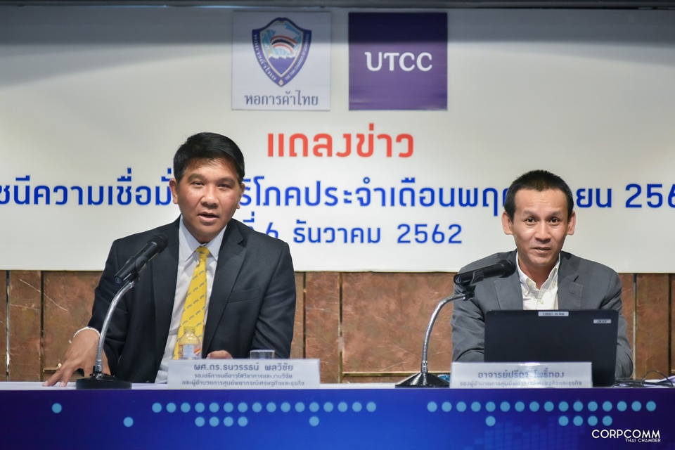 นายปรีดา โพธิ์ทอง รองผู้อำนวยการ ศูนย์พยากรณ์เศรษฐกิจและธุรกิจ มหาวิทยาลัยหอการค้าไทย แถลง ดัชนีความเชื่อมั่นผู้บริโภคเดือนพฤศจิกายน 2562 ว่า ดัชนีความเชื่อมั่นผู้บริโภคอยู่ที่ระดับ 69.1 ปรับตัวลดลงต่อเนื่องเป็นเดือนที่ 9 และอยู่ในระดับต่ำสุดในรอบ 67 เดือน นับตั้งแต่ปี 2559 ด้านดัชนีความเชื่อมั่นผู้บริโภคปัจจุบันปรับตัวลดลงต่อเนื่องเป็นเดือนที่ 9 จากระดับ 46.5 ในเดือนตุลาคม 2562 มาอยู่ในระดับ 45.2 ในเดือนพฤศจิกายน 2562 ต่ำสุดในรอบ 218 เดือน หรือ 18 ปี 2 เดือนนับตั้งแต่เดือนตุลาคม 2544