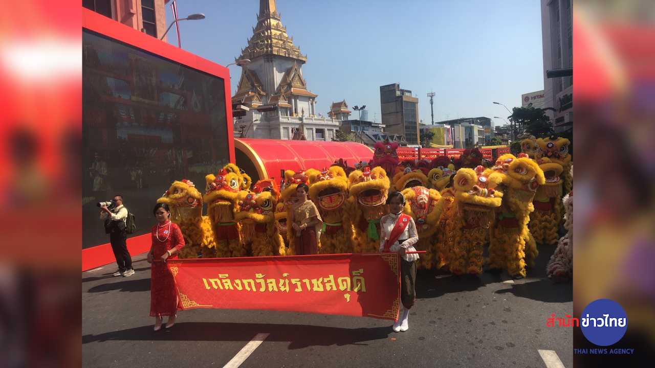 เยาวราช 6 ธ.ค.-พ่อค้าประชาชนย่านเยาวราช ร่วมเดินขบวนพาเหรด พร้อมขบวนมังกรยาว 108 เมตร เชิญชวนประชาชนรอเฝ้าฯ รับเสด็จช่วงเย็น