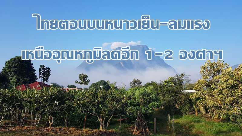 กรมอุตุนิยมวิทยา พยากรณ์อากาศ 24 ชั่วโมงข้างหน้า ประเทศไทยตอนบนมีอากาศหนาวเย็นกับมีลมแรง ภาคเหนือ อุณหภูมิจะลดลง 1-2 องศาเซลเซียส ส่วนตอนกลางวันท้องฟ้าโปร่งและมีแดดจัด บริเวณพื้นราบในภาคเหนือและภาคตะวันออกเฉียงเหนือมีอากาศหนาวถึงหนาวจัด อุณหภูมิต่ำสุด 5-15 องศาเซลเซียส ส่วนยอดดอยและยอดภูมีอากาศหนาวจัดกับมีน้ำค้างแข็งบางพื้นที่ อุณหภูมิต่ำสุด 1-8 องศาเซลเซียส