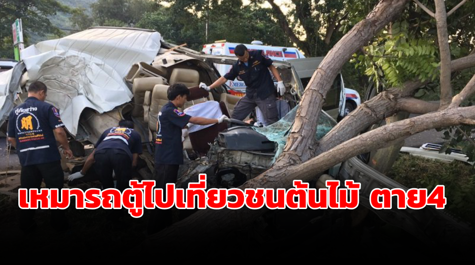 ประจวบคีรีขันธ์ 9 ธ.ค.- อุบัติเหตุเศร้าเช้านี้ ถนนสายเพชรเกษม-ประจวบฯ รถตู้เหมาพาไปเที่ยวภาคใต้ชนต้นไม้เต็มแรงเสียชีวิต 4 เจ็บอีก 6