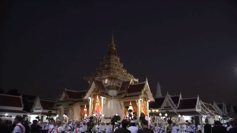 His Majesty the King, accompanied by Her Majesty the Queen, presided over the ceremony to light the fire for the cremation at 5 pm.