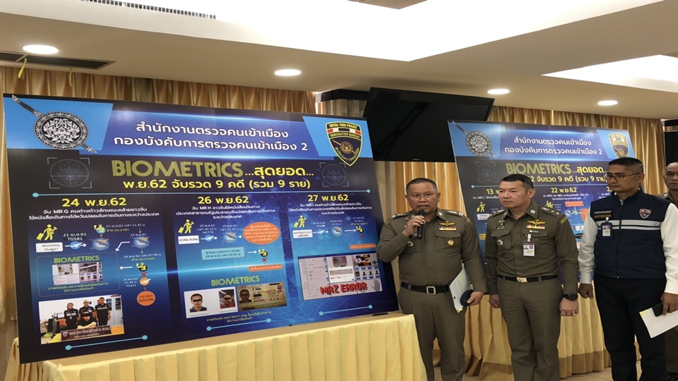 พลตำรวจตรีชูฉัตร ธารีฉัตร รองผู้บัญชาการสำนักงานตรวจคนเข้าเมือง แถลงผลการปฎิบัติงานของสำนักงานตรวจคนเข้าเมือง 2 โดยระบุว่าในรอบปีที่ผ่านมา ตั้งแต่มีการเปิดใช้ระบบไบโอเมตริก ได้ปฎิเสธการเข้าเมืองของต่างชาติแล้วกว่า 1,000 ราย จับกุม 47 ราย เฉพาะในเดือน พ.ย.จับกุมได้ 9 ราย แบ่งเป็นผู้ต้องหา 2 รายแรกชาวจีนและเม็กซิโก ใช้หนังสือเดินทางบุคคลอื่น โดยใช้หน้าเหมือนเจ้าของพาสปอร์ตตัวจริง 20% , ส่วนอีก 5 ราย เป็นชาวบังคบาเทศ,โมร็อคโก,ไต้หวัน และชาวจีน ปลอมแปลงรายละเอียดหนังสือเดินทางบุคคลและอีก 2 รายเป็นชาวจีนส่วนอีกรายยังไม่ทราบสัญชาติที่แท้จริง ใช้หนังสือเดินทางปลอมทั้งเล่มเพื่อเดินทางเข้าประเทศไทย