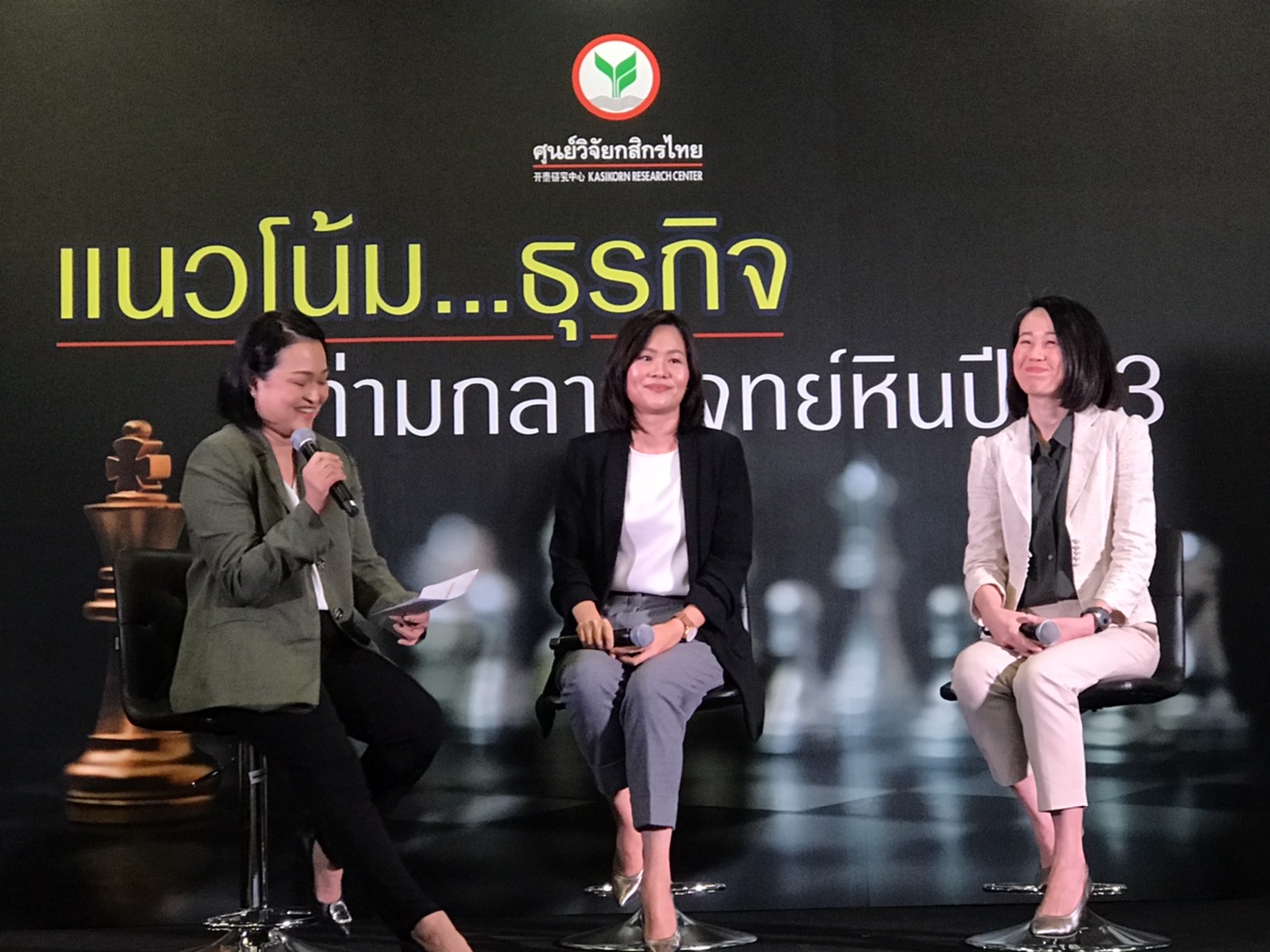 นางสาวณัฐพร ศรีรัตน์ศิริกุล ผู้ช่วยกรรมการผู้จัดการ บริษัท ศูนย์วิจัยกสิกรไทย จำกัด กล่าวในงานเสวนาเรื่อง “แนวโน้มธุรกิจ ท่ามกลางโจทย์หินปี 2563” ว่า การชะลอตัวของการส่งออก จากผลสงครามการค้า และเงินบาทที่แข็งค่า ส่งผลให้การส่งออกปีนี้ติดลบร้อยละ 2.5 จากเดิมคาดติดลบร้อยละ 1 รวมถึงการลงทุนโดยรวมที่โตต่ำเพียงร้อยละ 2.3 และความล่าช้าของการประกาศใช้ ร่างพระราชบัญญัติงบประมาณรายจ่ายประจำปี 2563 ทำให้ศูนย์วิจัยกสิกรไทยปรับลดประมาณการเศรษฐกิจไทยในปี 2562 ลงมาอยู่ที่ร้อยละ 2.5 จากเดิมที่ร้อยละ 2.8