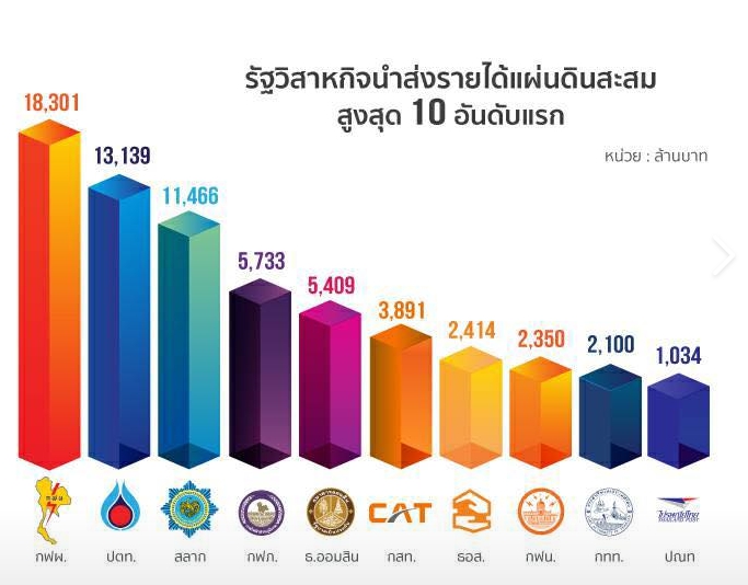 รัฐวิสาหกิจที่นำส่งรายได้แผ่นดินสะสมสูงสุด 10 อันดับแรกในปีงบประมาณ 2563